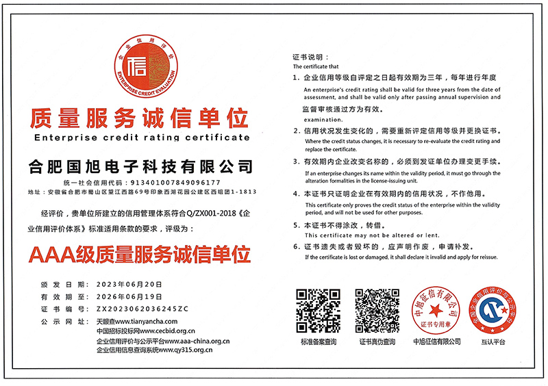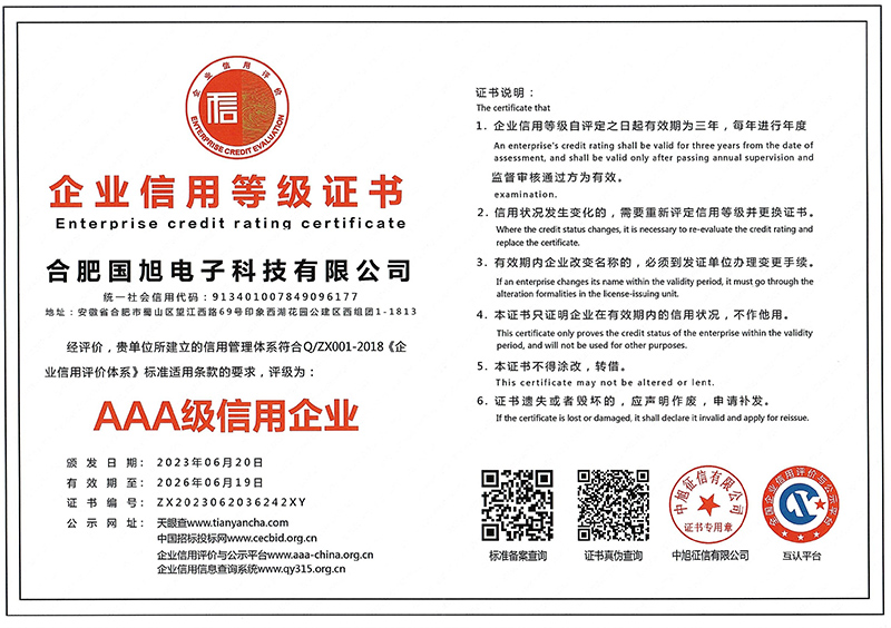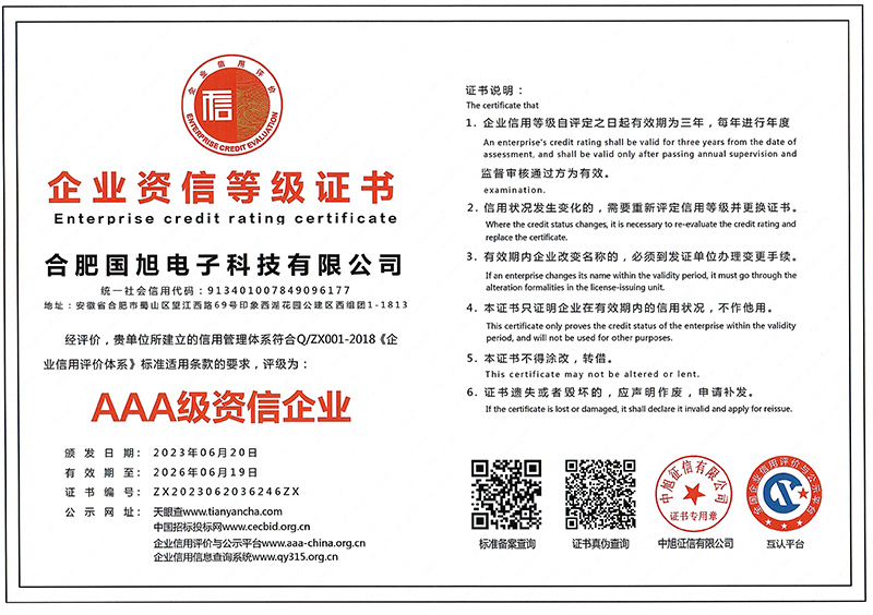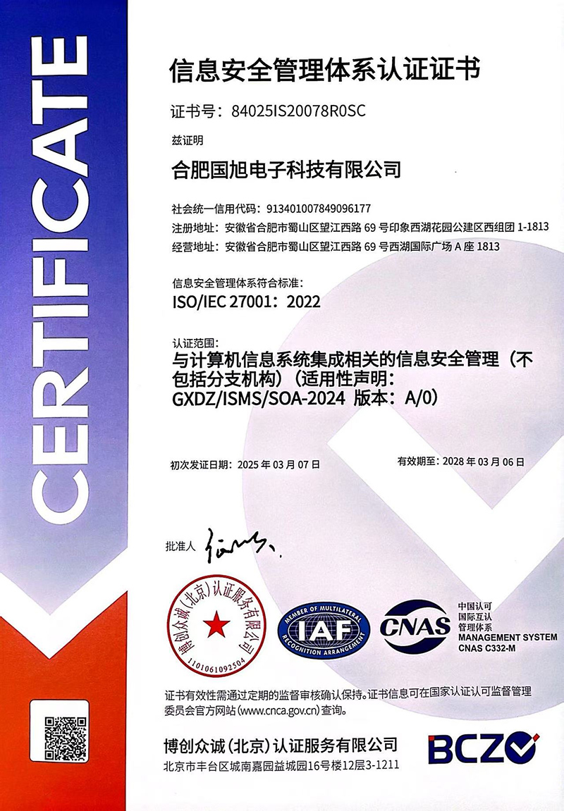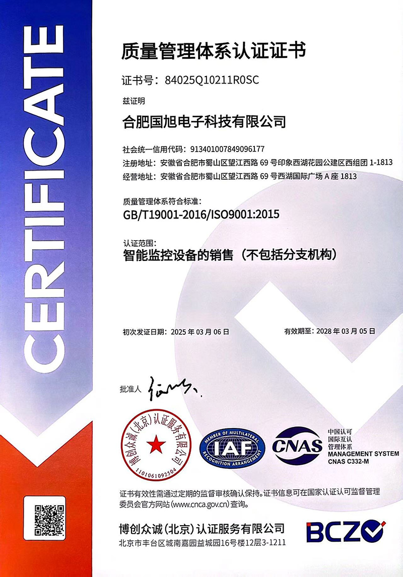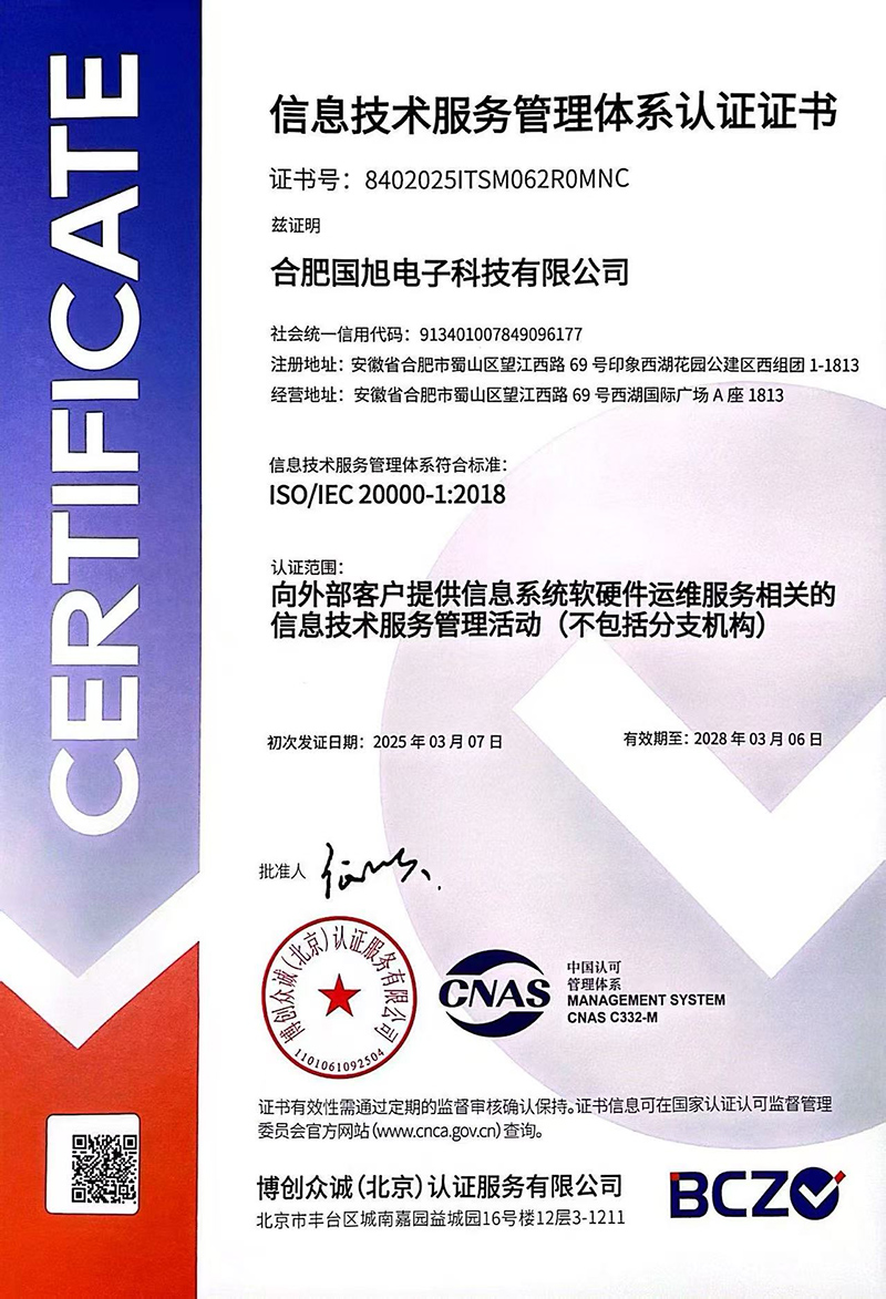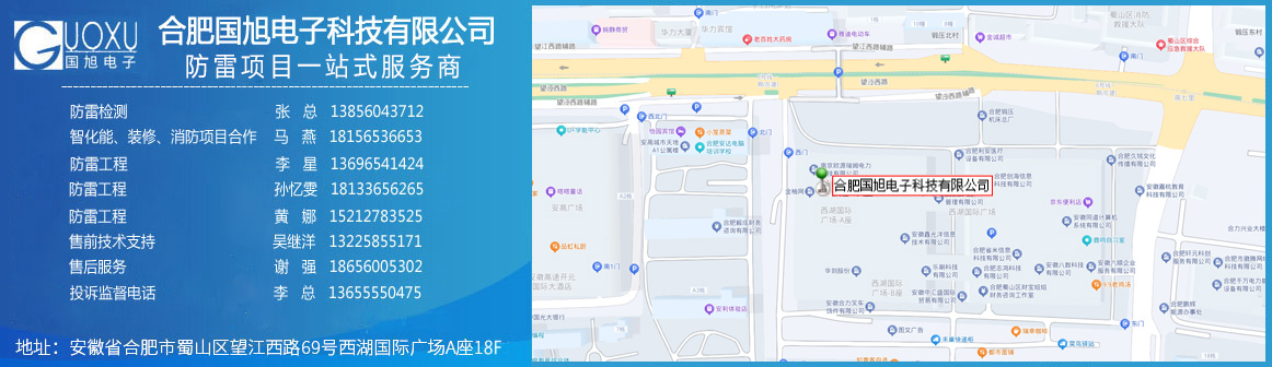 合肥國旭電子科技有限公司創(chuàng)立于2006年,總注冊資本2008萬。公司總部地址位于安徽IT主流商圈核心,合肥市蜀山區(qū)望江西路與肥西路交口西湖國際廣場。 公司是專業(yè)從事智能防雷檢測系統(tǒng)、智能化工程設計與施工工程、防雷設計施工工程、數據中心機房、消防工程、網絡監(jiān)控安全技術防范工程、及智能變電站安全預警系統(tǒng)。